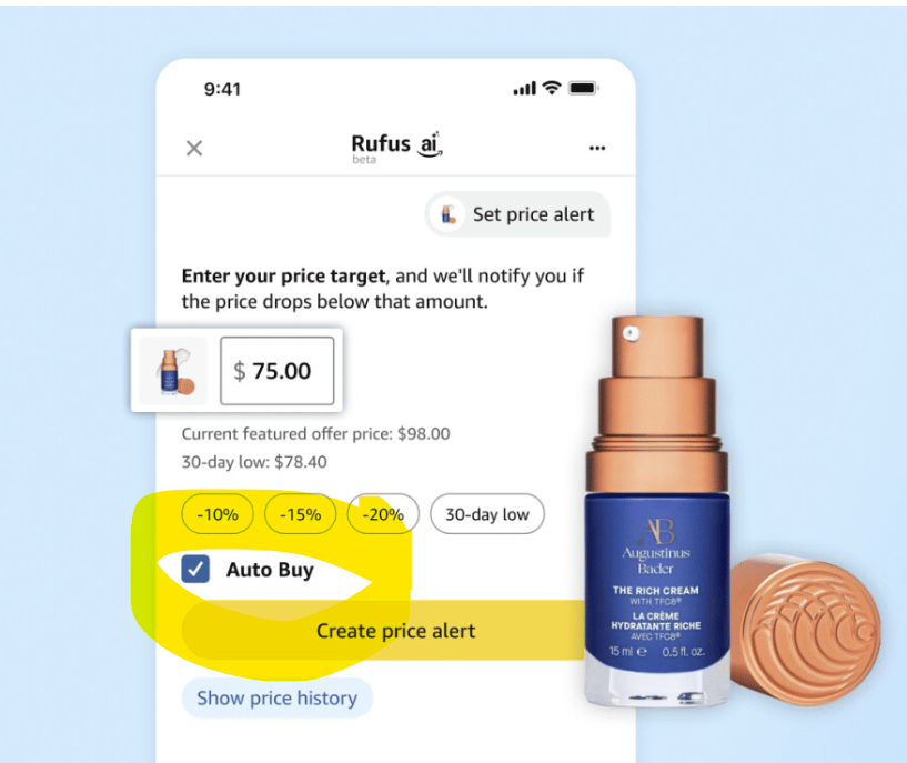 Here's something fascinating: Amazon isn't exactly shouting about this feature from the rooftops. There's no giant "AUTO-BUY" button flashing on product pages. You have to know to click Rufus, navigate to price history, manually set everything up... It's like they're beta testing on the entire platform but only telling people who read the fine print.