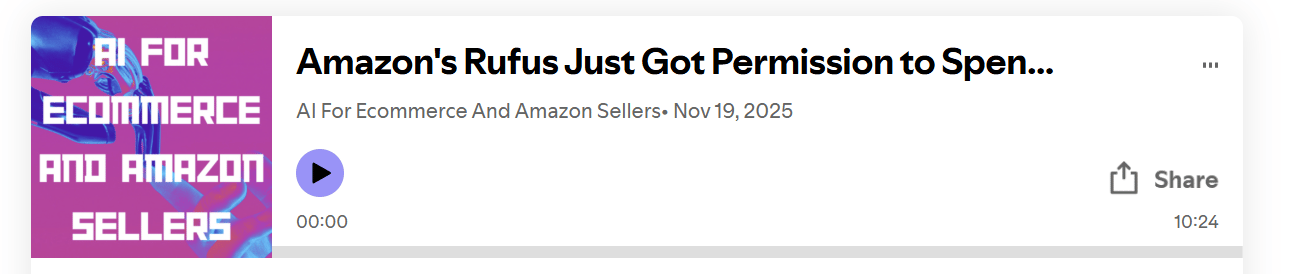 Give it six months. Amazon will start suggesting Auto Buy thresholds based on your shopping patterns. "We noticed you buy protein powder every month. Would you like Rufus to automatically reorder when the price drops below $45?" Then it'll be default-on for certain categories. Then it'll be buying things it thinks you'll want based on your browsing. Then we'll all be living in a world where our AI assistants are having purchasing negotiations with each other while we sleep.