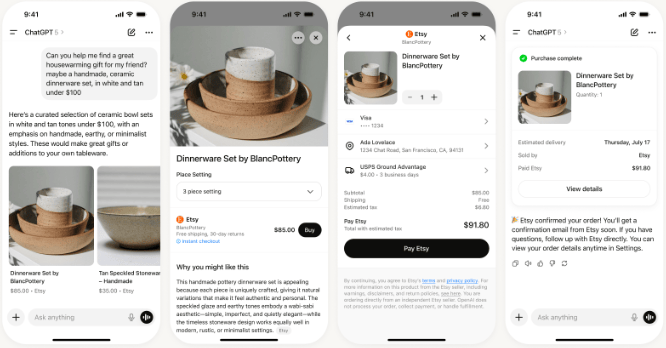 When ChatGPT can show you products, let you ask questions, get instant answers, compare options, and check out in one place—why would you ever leave? It's like having a personal shopper, customer service rep, and cashier all rolled into one, except it never gets tired, never judges your 3 AM shopping habits, and actually remembers your preferences.