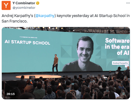 A good listen to Andrej at the AI Startup School - how has software changed in the new era of Ai?