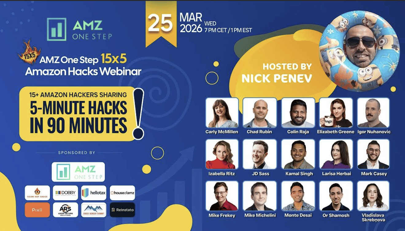 I’m inviting you to the AMZ One Step 15x5 Amazon Hacks Webinar on Wed Mar 25th 7 PM CET/1pm EST
