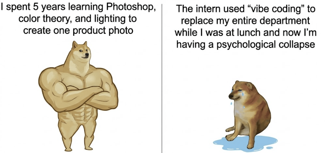 Here's what's happening: the tools that used to require specialized expertise are now accessible to anyone willing to watch a YouTube tutorial and consume dangerous amounts of caffeine. A marketer can spin up A/B tests. An ops manager can build automation workflows. Your intern can generate product photography that would have cost thousands two years ago. (Your intern is terrifying, by the way. Have you seen what they can do with vibe coding?)
